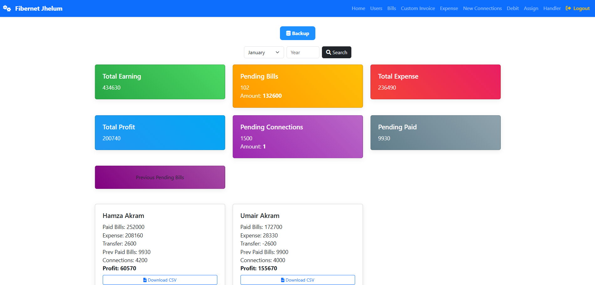 Billing & invoicing POS system UI designed for an ISP business workflow.