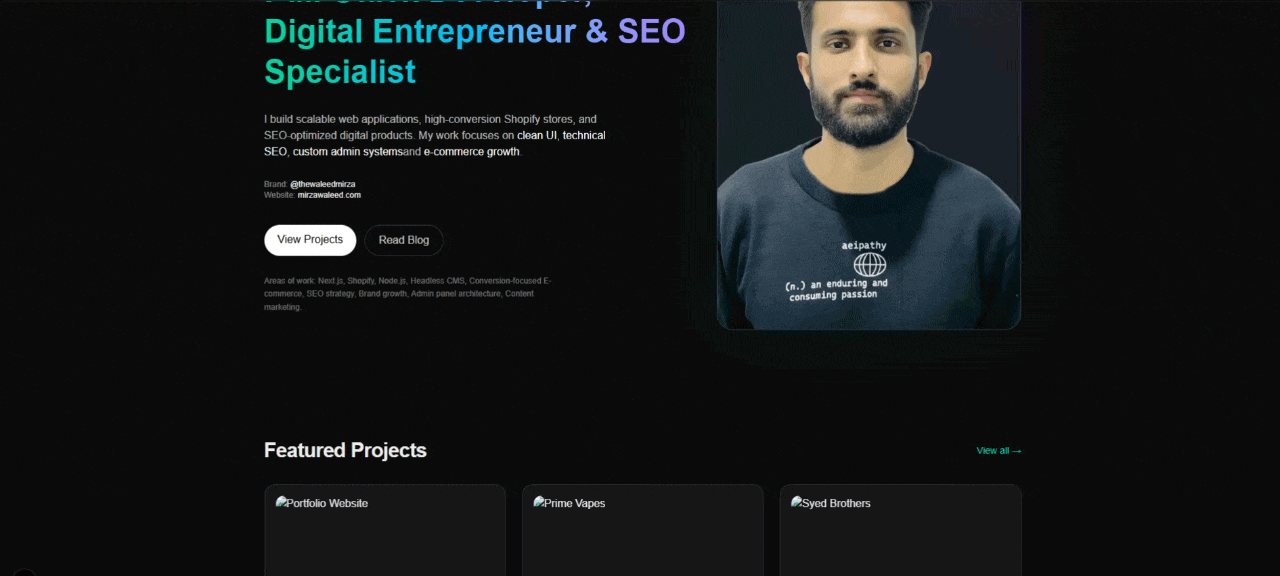 A collection of full-stack projects, high-conversion Shopify stores, and custom admin systems designed with SEO-first architecture and modern UI patterns.